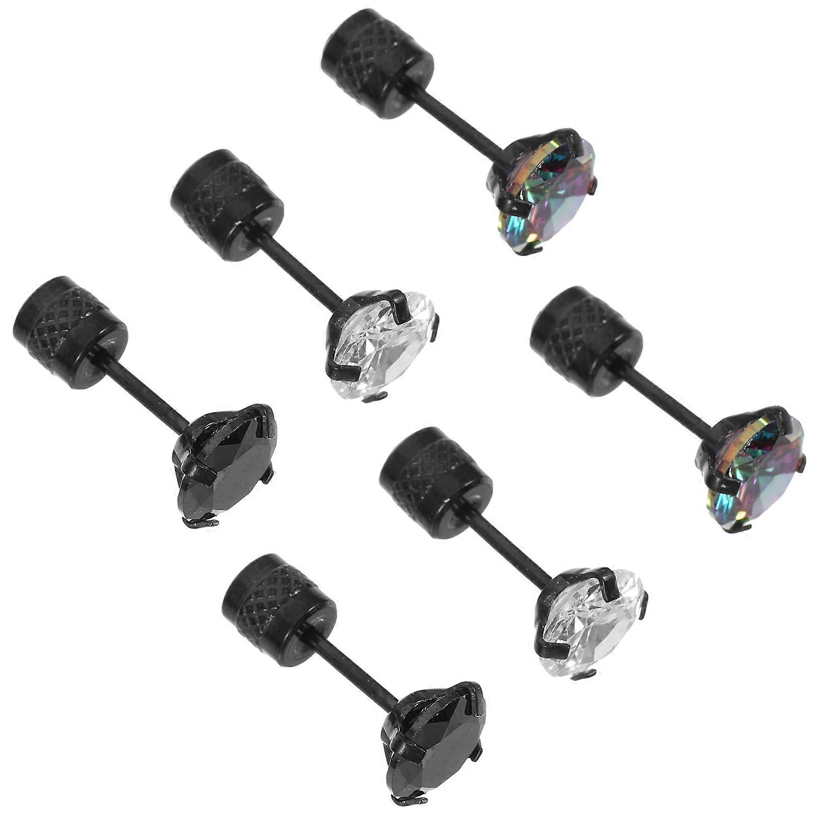 Zirconia Earrings Studs for Men and Women Titanium Steel 3Pairs Set