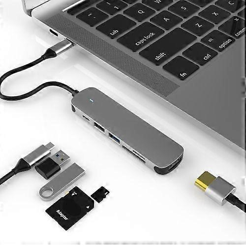 ZRUXE HB-008 6 in 1 USB-C/Type-C to 4K HDMI Card Slot + SD/TF + USB 3.0 + USB 2.0 + PD USB-C/Type-C Ports Docking Station Hub